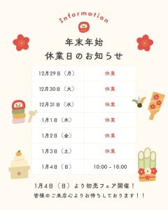 さて!本日は年末年始の営業時間のお知らせです🎍✨